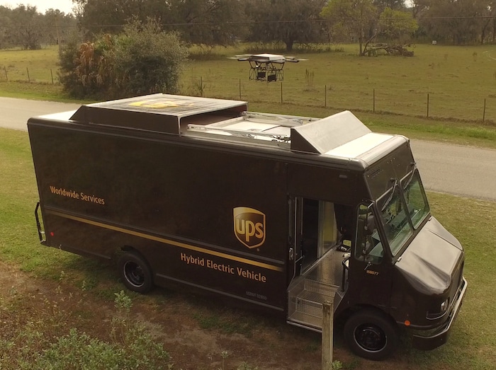 UPS a réalisé des essais de livraisons de colis par drone embarqué à bord d’un de ses camions équipé d’un dispositif spécifique. L’objectif est de développer ce service en zone rurale où la concentration des clients est faible.