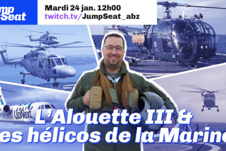 Culture Aéro Les hélicoptères de la Marine nationale à l’honneur sur JumpSeat Alors que l’Alouette 3 vient de tirer sa révérence et que le H160M pointe le bout de ses pales, le capitaine de corvette Christophe D est l’invité de l’émission JumpSeat (Twitch) d’Aerobuzz.fr. Il parlera de son métier, de ses missions, de ses hélicoptères. Venez échanger avec lui et avec les chroniqueurs de JumpSeat. 23 janvier 2023 par Aerobuzz