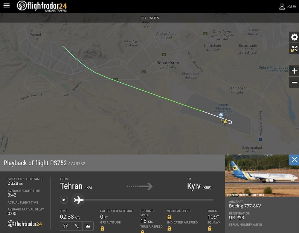 L’accident a eu lieu à 2h28 UTC, soit un peu plus de 6h du matin à Téhéran. L’avion, un 737-800 avec 167 passagers à bord et 9 membres d’équipage s’est écrasé 3 minutes et 42 secondes après son décollage selon les données de Flightradar24. Il n’y a aucun survivant.
