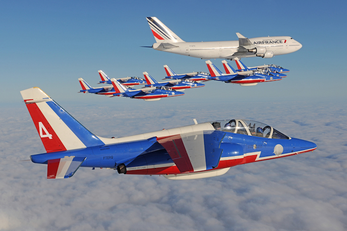 A l’initiative d’Air France, Eric Magnan (Airborne Films) signe un nouveau clip vidéo de 3 minutes 30 secondes, intitulé « Athos 747 », qui met en scène un Jumbo Jet de la compagnie nationale en vol avec la Patrouille de France. 11 Alphajet, 1 Boeing 747, 18 caméras… Les coulisses d’un tournage millimétré.
