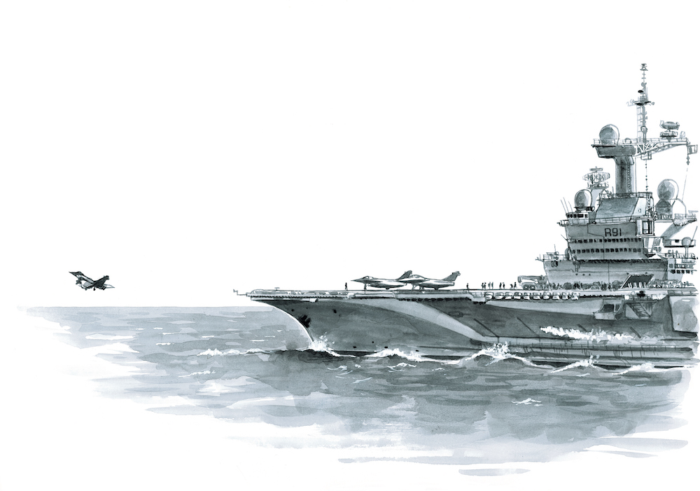Raynal Pellicer a passé dix-huit jours à bord du Charles de Gaulle. Il était accompagné du dessinateur Titwane. Ensemble, ils livrent un reportage de 200 pages d’une justesse éblouissante. A la rencontre des hommes et des femmes du porte-avions, sans distinction de grade, ni tabou.