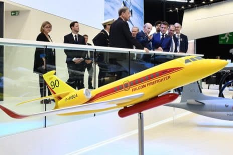 Industrie Dassault présente son Falcon 2000 pompier du ciel La maquette du Falcon 2000XLS exposée dans le hall A au Salon du Bourget 2023 se voyait de loin, le jaune de son fuselage tranchant clairement avec le gris et le blanc des autres modèles qui l’entouraient sur le stand prestige de l’avionneur de Saint-Cloud . Un jaune « Canadair » symbole de la mission feu de forêt pour un Falcon. 31 août 2023 par Frédéric Marsaly