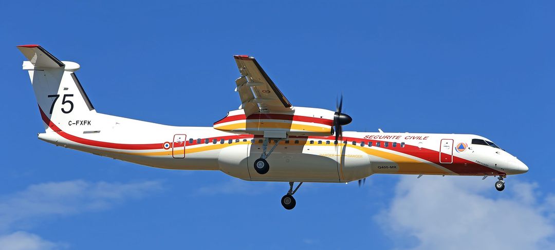 Mardi 18 juin 2019, en fin d’après-midi, à l’issue de son convoyage depuis la Colombie Britannique, le premier des 6 Q400MR commandés pour succéder aux vénérables Firecat s’est posé à la base de la Sécurité Civile de Nîmes.